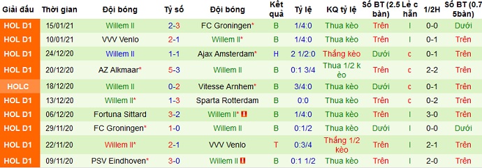 Chuỗi trận không thắng của Willem II hiện đã kéo dài lên con số 8, trong đó đội bóng chỉ có được 1 trận hòa duy nhất và để thua ở cả 7 trận còn lại. Trên sân khách thành tích của Willem II cũng không khá hơn khi đội bóng đang để thua trong cả 5 lần du đấu gần nhất.