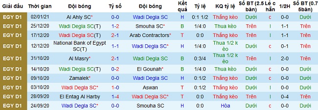 + Thống kê 10 trận gần nhất của Wadi Degla