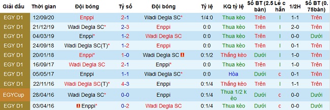 Tỷ lệ kèo Wadi Degla vs ENPPI