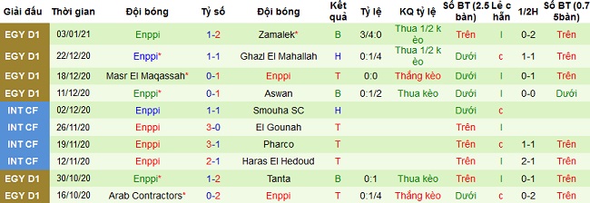 + Thống kê 10 trận gần nhất của ENPPI
