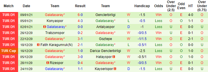 + Thống kê 10 trận gần nhất của Galatasaray