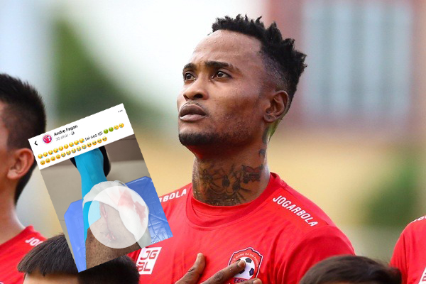 Các CĐV Hải Phòng không khỏi lo lắng sau khi xem bài đăng mới nhất của tiền đạo Diego Fagan trên trang cá nhân. Chân sút người Jamaica chụp lại chiếc chân trái của anh với một vết thương dài và sâu ở vùng ống đồng.