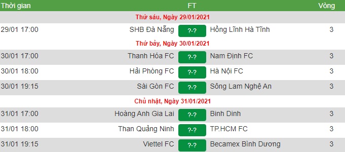 Lịch thi đấu vòng 3 V-League 2021
