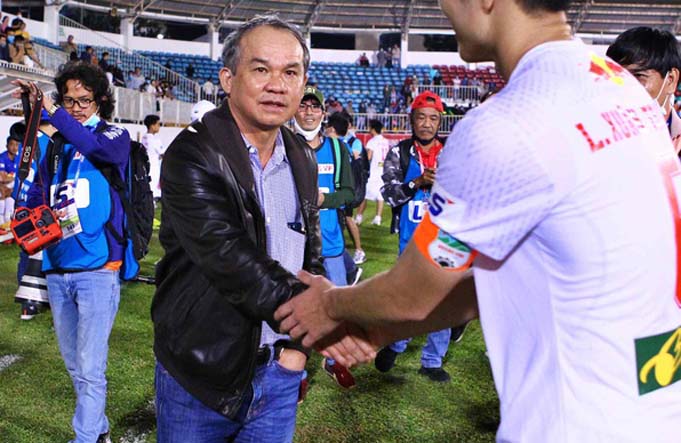 Có thể bầu Đức ngoài mặt không thể hiện sự đồng tình, nhưng người hâm mộ có thể thấy ngay sau trận, ông chủ đội bóng phố Núi nhảy xuống sân bắt tay cầu thủ cùng vẻ mặt tươi rói.