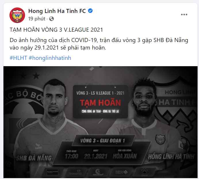 Lý do là bởi SHB Đà Nẵng mới trở về từ Quảng Ninh hôm 25/1, sau khi có chiến thắng trên sân Cẩm Phả trước đội bóng đất Mỏ. Toàn bộ thành viên của CLB Đà Nẵng đã được xét nghiệm Covid-19. Kết quả chỉ được xác định vào sáng 29/1. Do đó, các cầu thủ không thể ngay lập tức tham gia trận đấu với Hồng Lĩnh Hà Tĩnh nên ban tổ chức đã buộc phải thông báo hoãn.