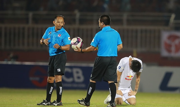 Trận đấu giữa TP.HCM vs Hà Nội trên sân Thống Nhất ở V-League 2020 để hình ảnh không tốt về các trọng tài. Theo đó, các cầu thủ TP.HCM phản ứng dữ dội với trọng tài chính Trần Văn Trọng khi 2 lần họ bị từ chối hưởng 11m dù trung vệ Thành Chung để bóng chạm tay rõ ràng trong vòng cấm.